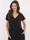 Entdecken Sie die perfekte Kombination aus Stil und Komfort mit dieser eleganten schwarzen Bluse. Hergestellt aus hochwertiger 100% Viskose, ist diese Bluse ideal für den täglichen Gebrauch. Kurze Ärmel und der V-Ausschnitt verleihen der Bluse einen modernen Look, während das glatte Muster dafür sorgt, dass sie sich leicht mit verschiedenen Outfits kombinieren lässt. Mit ihrer Standardlänge und dem lockeren Schnitt fühlen Sie sich den ganzen Tag über wohl. Ökologische Mode sah nie so gut aus! Maschinenwäsche bei 30 °C garantiert eine einfache Pflege. Verpassen Sie nicht die Gelegenheit, dieses Stück in Ihren Kleiderschrank aufzunehmen!