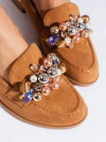 Entdecken Sie die perfekte Kombination aus Stil und Komfort mit unseren Mokassins mit Kristallen in eleganter Camel-Farbe. Diese Damenschuhe sind mit einer geschlossenen Zehenpartie und einem weichen, geschlossenen Fersenbereich entworfen, was maximalen Komfort beim Tragen garantiert. Mit einer Absatzhöhe von 3 cm und einem Blockabsatz sind sie ideal für den täglichen Gebrauch sowie für besondere Anlässe. Das Innenfutter aus Kunstleder und das Obermaterial aus Kunstwildleder sorgen für ein hochwertiges Gefühl und eine lange Lebensdauer. Diese Mokassins sind eine großartige Wahl für Frühling, Sommer und Herbst, und lassen sich wunderbar mit verschiedenen Outfits kombinieren. Lassen Sie sich von ihrem klassischen und lässigen Stil verzaubern!