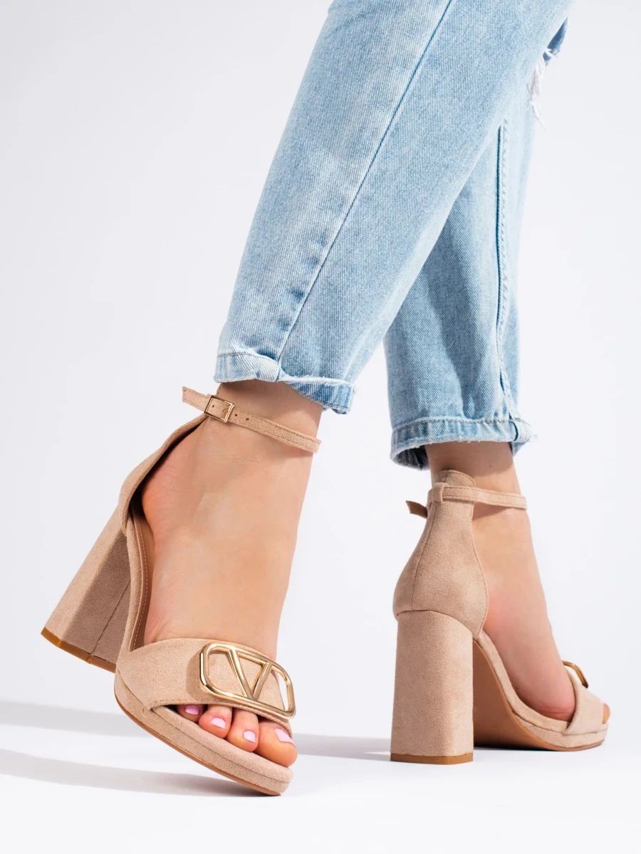 Entdecken Sie Eleganz und Stil mit diesen beigen Damen Sandalen mit hohen Absätzen. Mit offener Zehenpartie und klassischem Design sind sie ideal für Abendveranstaltungen und festliche Anlässe. Der hohe Absatz von 10 cm verleiht der Silhouette eine schlanke und anmutige Note, während das ökologische Leder und die Wildleder-Optik Komfort und Qualität garantieren. Die Sandalen sind mit einem praktischen Schnallenverschluss ausgestattet, der das An- und Ausziehen erleichtert. Mit der glatten Kunststoffsohle sind diese Sandalen nicht nur stilvoll, sondern auch praktisch für den Sommer. Lassen Sie sich von ihrer Eleganz verzaubern und bereichern Sie Ihre Garderobe mit diesem zeitlosen Stück!