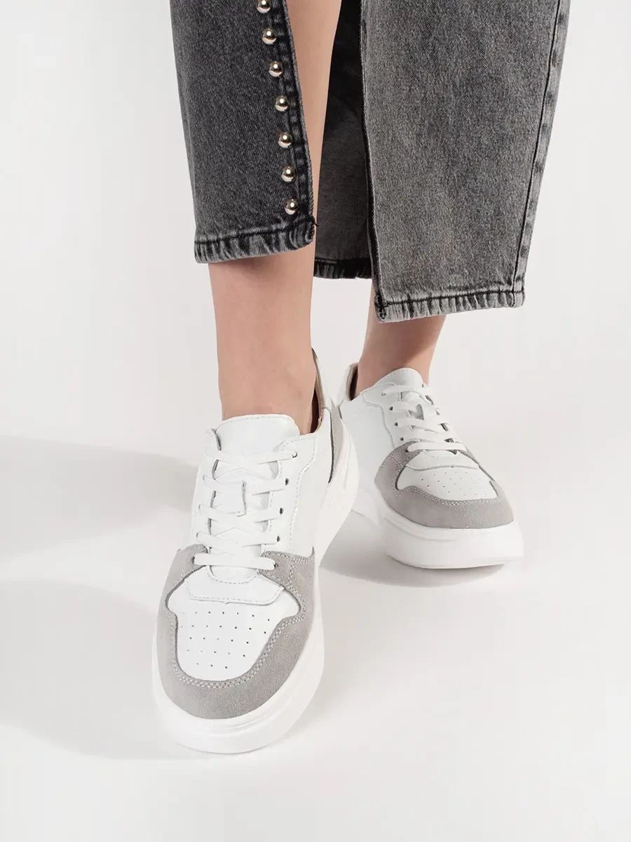Entdecken Sie die perfekte Kombination aus Stil und Komfort mit unseren weißen Leder Sneakers auf Plattform. Diese Sneakers sind mit einer geschlossenen Zehenpartie und einem weichen, geschlossenen Fersenbereich entworfen, was maximalen Tragekomfort garantiert. Mit einer Plattformhöhe von 4 cm und einer Gesamthöhe zwischen 3 und 5 cm sind sie ideal für den täglichen Gebrauch. Hergestellt aus 100% natürlichem Leder, sind diese Sneakers nicht nur modisch, sondern auch praktisch. Das Innenfutter aus Leder sorgt für ein angenehmes Tragegefühl, während die Gummisohle mit Profil den nötigen Halt bietet. Perfekt für Herbst, Frühling und Sommer, sind diese Sneakers eine großartige Wahl für jeden Anlass. Kombinieren Sie sie mit Ihrem Lieblingsoutfit und strahlen Sie!