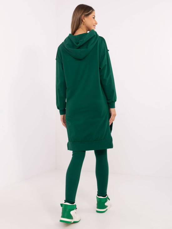 Entdecken Sie die perfekte Kombination aus Stil und Komfort mit unserem stylischen Set in Dunkelgrün. Dieses elegante Set besteht aus einem langen Hoodie und bequemen Leggings, die ideal für den Alltag sind. Hergestellt aus hochwertiger Baumwolle (90%) und Elasthan (10%), garantiert es maximalen Komfort und Anpassungsfähigkeit an Ihre Figur. Lange Ärmel und der hohe Bund der Leggings verleihen diesem Outfit einen modernen Look, während praktische Seitentaschen und der Reißverschluss am Hoodie die Funktionalität erhöhen. Dieses Set ist eine großartige Wahl für jede Gelegenheit, egal ob Sie einen Spaziergang machen oder einfach nur zu Hause entspannen. Denken Sie daran, dass es bei 30 °C in der Maschine gewaschen werden kann, was eine einfache Pflege gewährleistet. Probieren Sie dieses einzigartige Stück aus und strahlen Sie in jeder Situation!